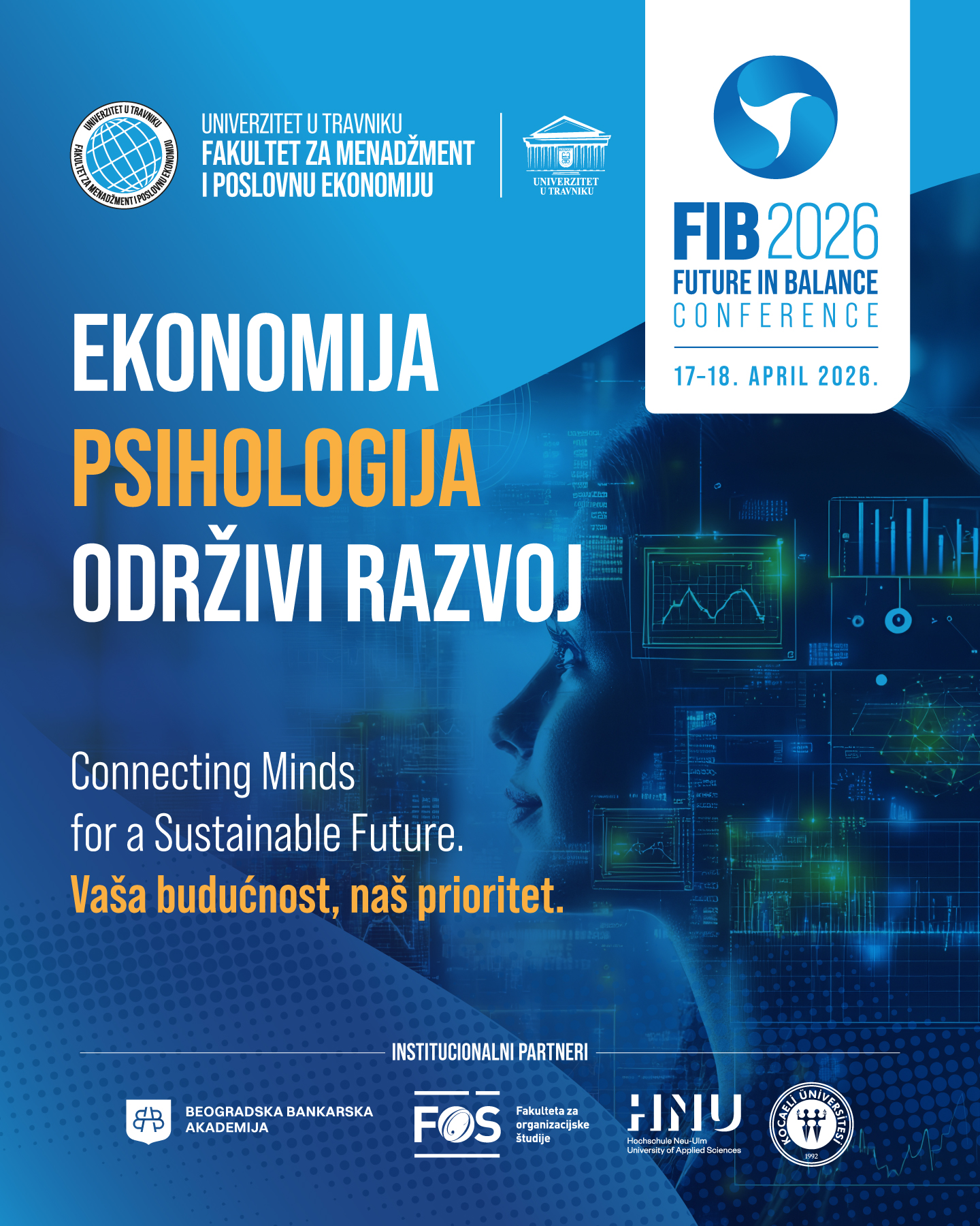 Međunarodna naučno-stručna konferencija FIB 2026 – Future in Balance: Ekonomija, psihologija i održivi razvoj predstavlja interdisciplinarnu platformu za razmjenu znanja, savremenih istraživanja i stručnih iskustava između akademske zajednice, istraživača i profesionalaca iz poslovnog sektora.